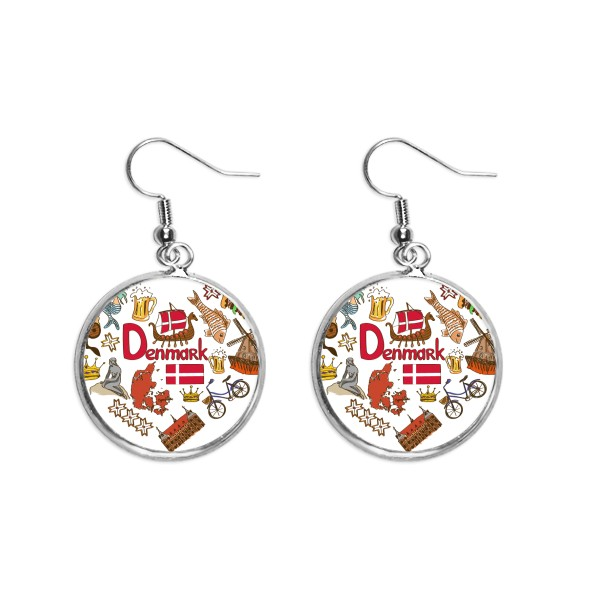 denmark love heart landscap national flag ear dangle silver drop ear jewelry woman