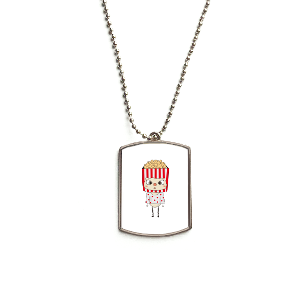 Food Popcorn Oil Snack Movie Delicious UU Stainless Steel Chain Dog Tag Pendant Pet Necklace