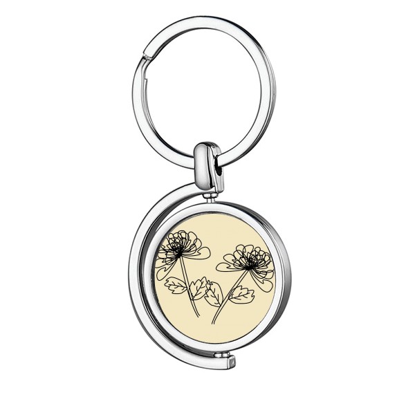 Hand Drawn Chrysanthemum Line Illustration Rotating Keychain Metal Keyring Holder